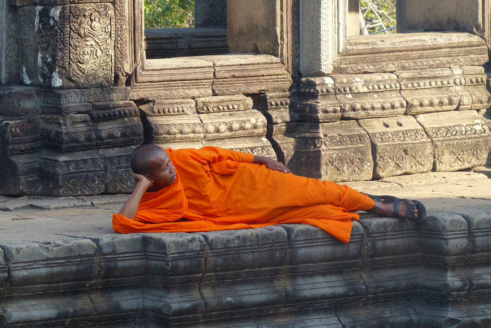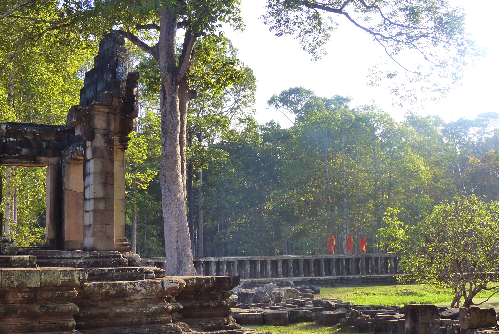 Le Baphuon : Juste derrière le Bayon, il faut emprunter une jolie et longue passerelle de pierre pour y accéder. D’en haut (attention la montée est extrêmement raide) il y a une jolie vue sur les temples autour et la passerelle. C’est assez sympa quand il y a des moines bouddhistes qui la traversent (ok très cliché aussi) et c’est également très drôle de les voir se faire prendre en photo en prenant des poses de biaaaatchs (ils aiment bien s’allonger sur le temple et prendre des poses lassives). Il y a des moines qui font du tourisme et oui !