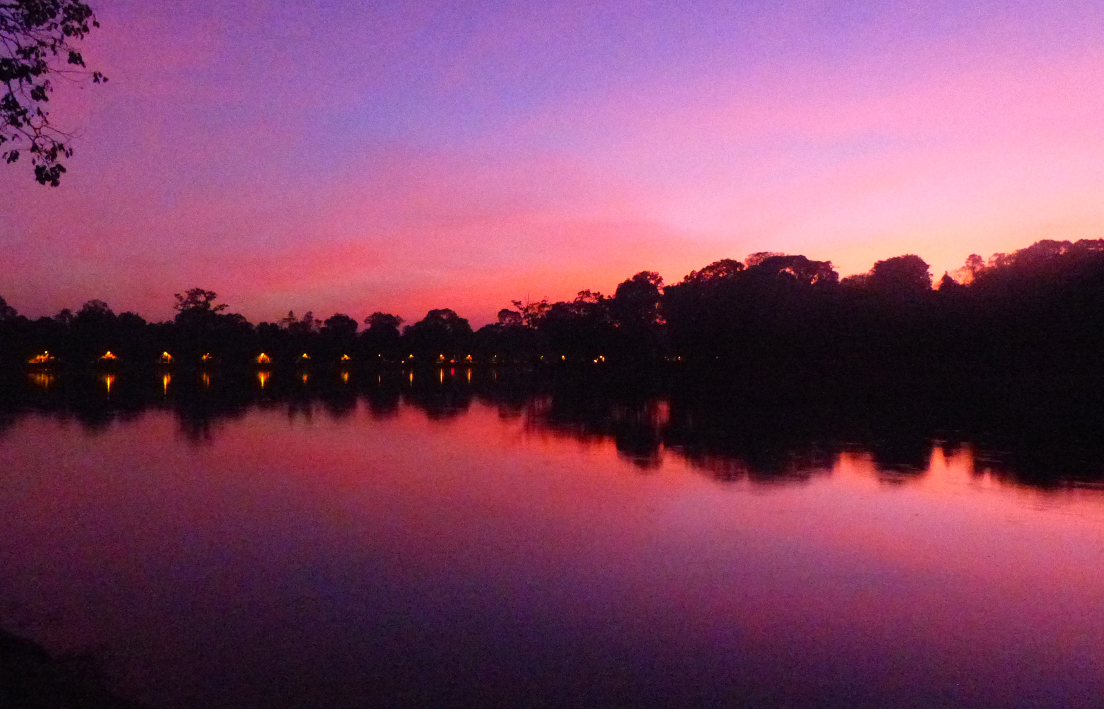 Nous profitons au retour d’un sublime coucher de soleil. Ce soir là le ciel est successivement orange Hermes, puis rose fuchsia, puis rouge vermillon (ou rouge baiser pour GS;-) ). Nous finissons notre parcours de nuit. Les derniers kilomètres pour rentrer le soir en vélo sont longs ! Heureusement demain nous repartons en tuk-tuk.