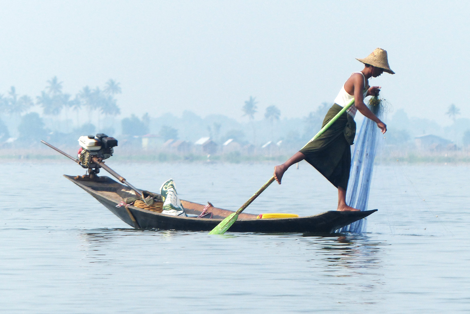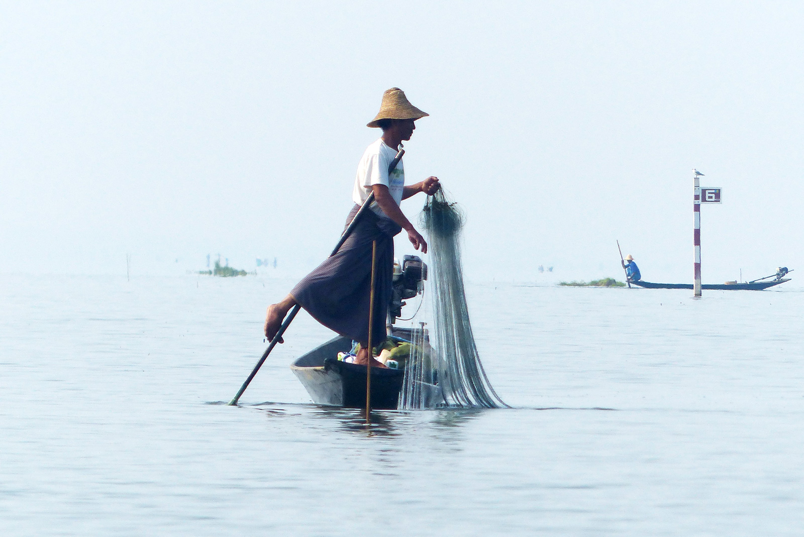 Ce matin nous partons à 8h00 pour faire une croisière sur le très célèbre lac Inle. Toutes sortes de pêcheurs se côtoient chacun avec sa technique. La manière dont les hommes rament est une des particularités de ce lac. C’est unique au monde !