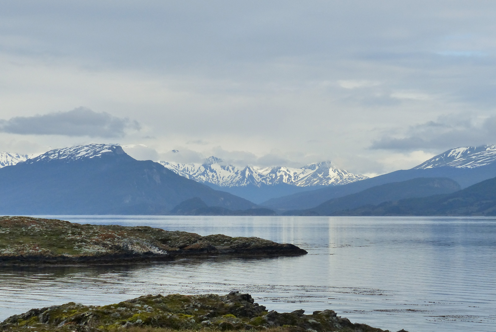 Nous nous arrêtons un peu plus loin pour descendre sur l’île Bridges pour prendre en photo Ushuaia de loin (tu vois que l’excursion s’adresse à un public large et de personnes d’âge mur car ils parlent de faire un trek* alors que tu marches 5 minutes !).