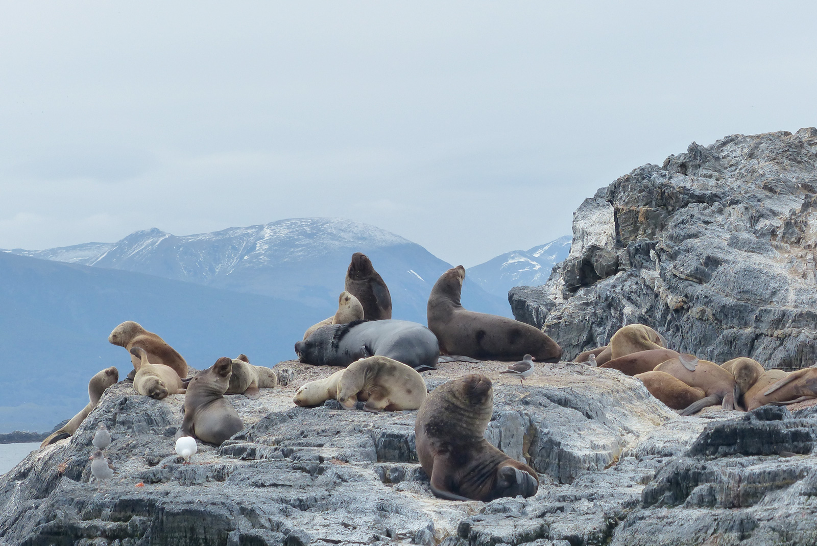 Après une bonne nuit, nous partons tôt pour embarquer sur un catamaran à la découverte du canal beagle et de la faune qui le peuple. Budget limité oblige, nous prenons la version la moins cher et donc avec le plus de monde…