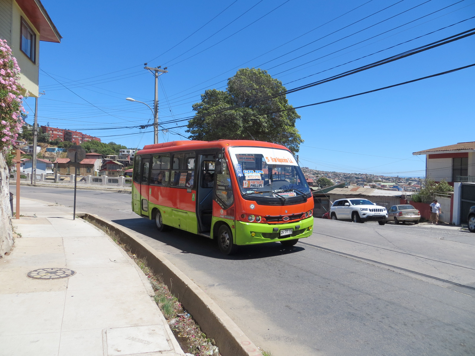 Ce matin nous prenons un bus pour aller de Vina del mar à Valparaiso ou Valpo pour les intimes. Ici, tout le monde circule en bus.