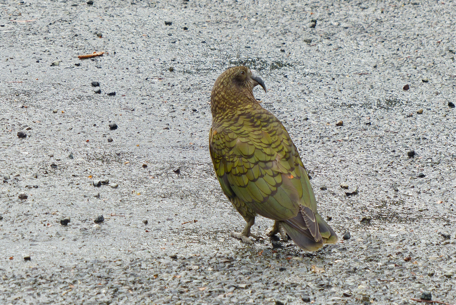 On repart pour le prochain stop, mais avant nous sommes arrêtées au niveau du tunnel. Alors que nous attendons notre tour Vyrg veut aller prendre en photo les oiseaux qui se sont posés autour de la voiture… elle remonte en courant car finalement ils ne semblent pas très sympathiques. Cela se confirme lorsqu’ils montent sur la voiture et commencent à taper sur la carrosserie avec leurs grands becs !! D’un coup on sursaute lorsqu’on entend un gros bruit sur la vitre conducteur et qu’en tournant la tête on voit une tête penchée depuis le toit qui nous espionne d’un œil agressif. On s’est senti un peu encerclées et agressées par ces oiseaux au bec crochu de la famille des perroquets.