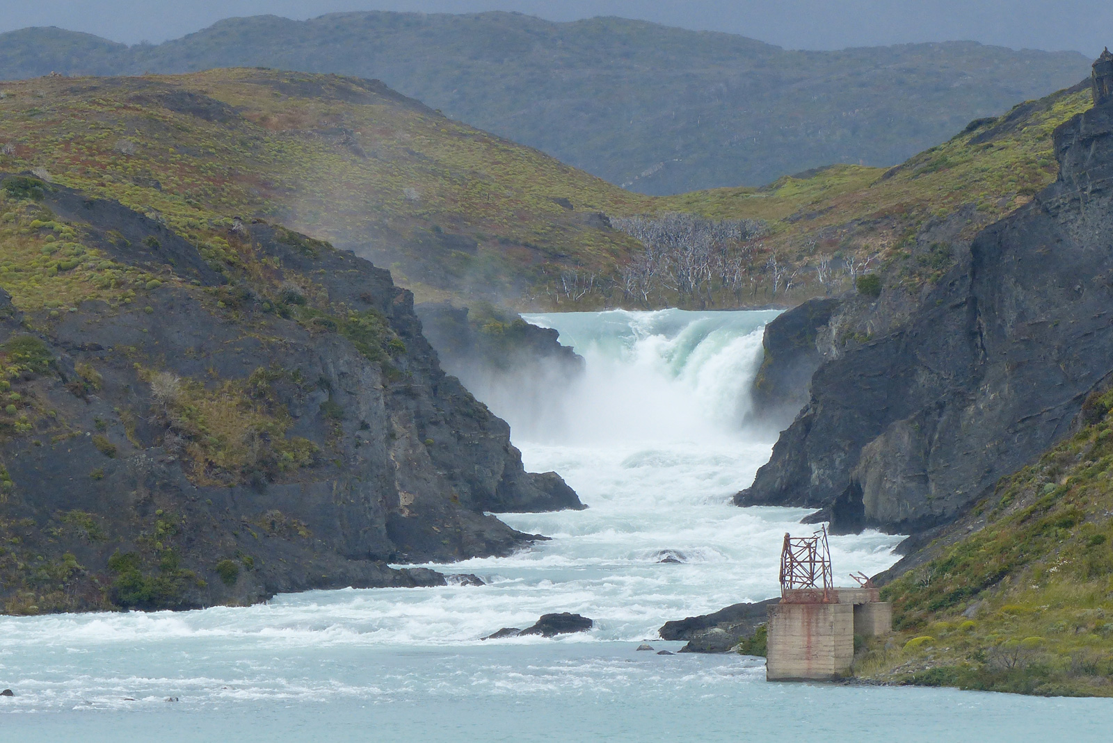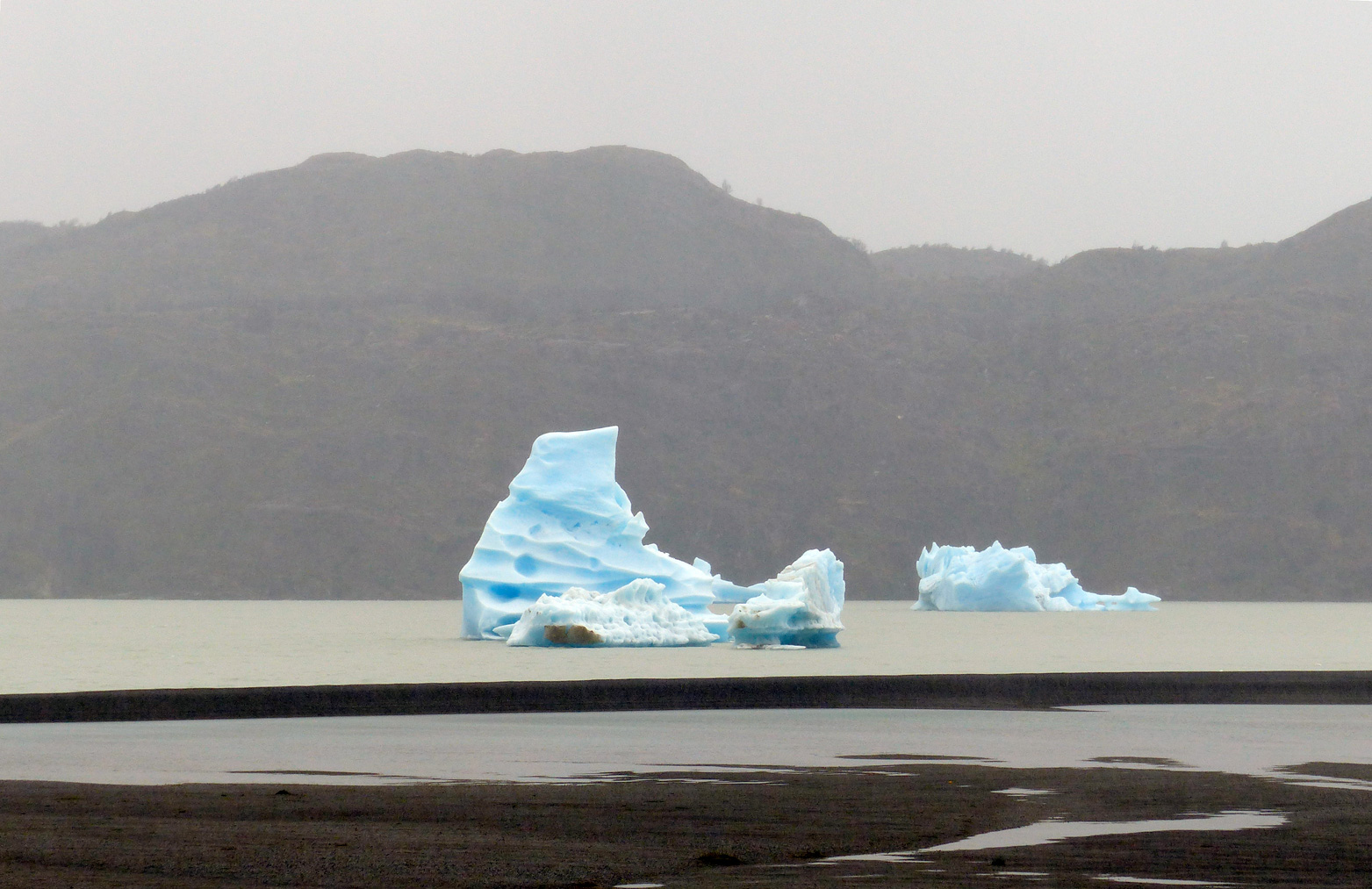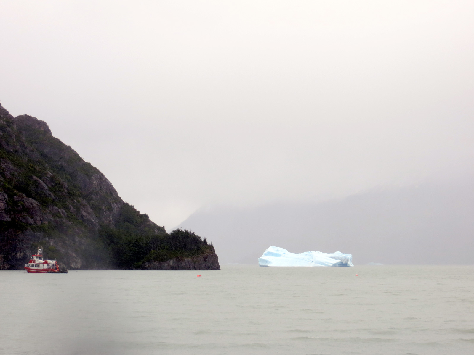 Nous partons toutefois en fin de matinée, le temps doit soit disant se lever dans l’apres-midi. 2h30 de route pour arriver au parc Torres del Paine depuis Puerto Natales. C’est l’échec ! Il ne s’arrête pas de pleuvoir ou presque. On fait le tour du parc en voiture. Nous ne faisons que deux arrêts : un à la cascade Salto Grande (il s’est arrêté de pleuvoir 5 min alors on s’est dit qu’on allait se mettre sous une cascade ca serait bête de rester au sec !) et un autre pour voir les icebergs qui se baladent dans le lac devant le glacier Grey.