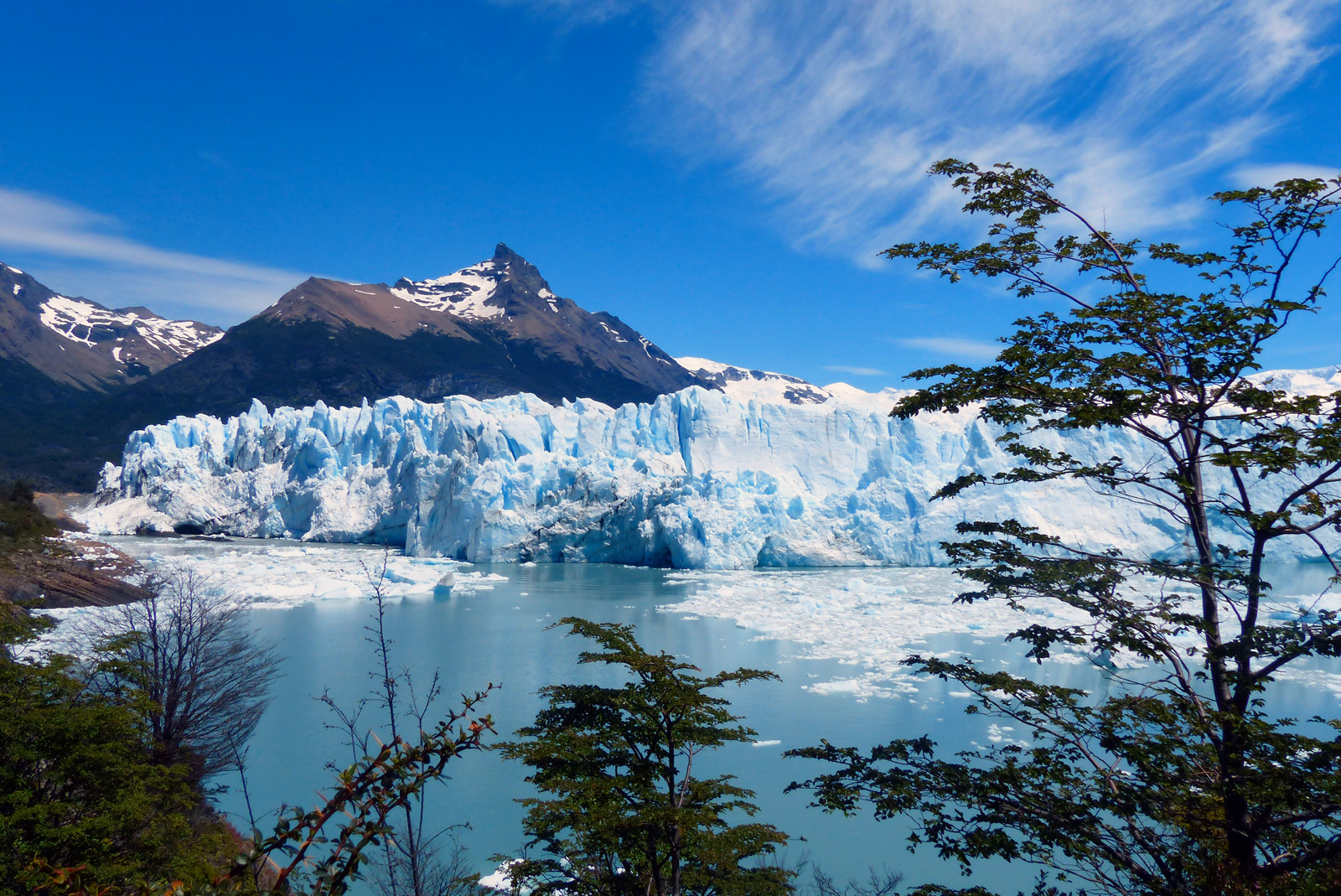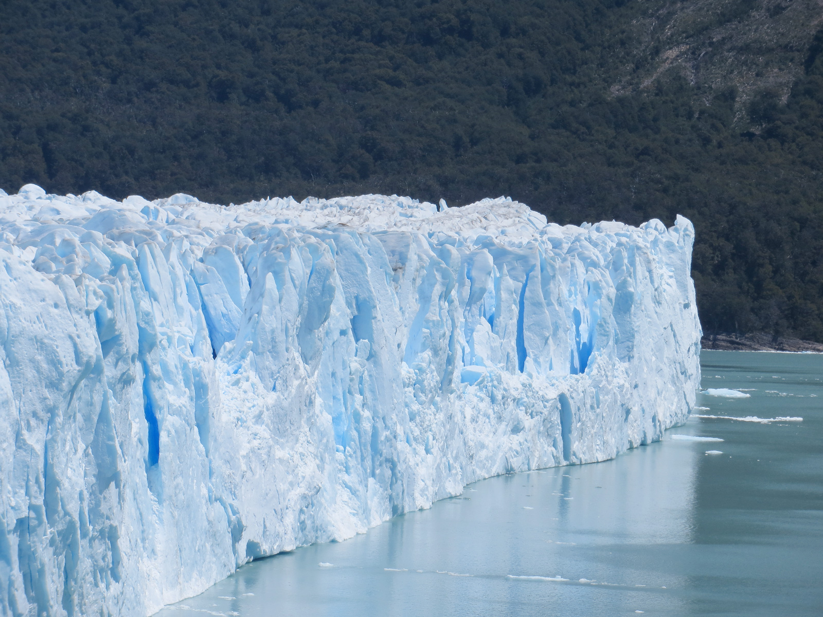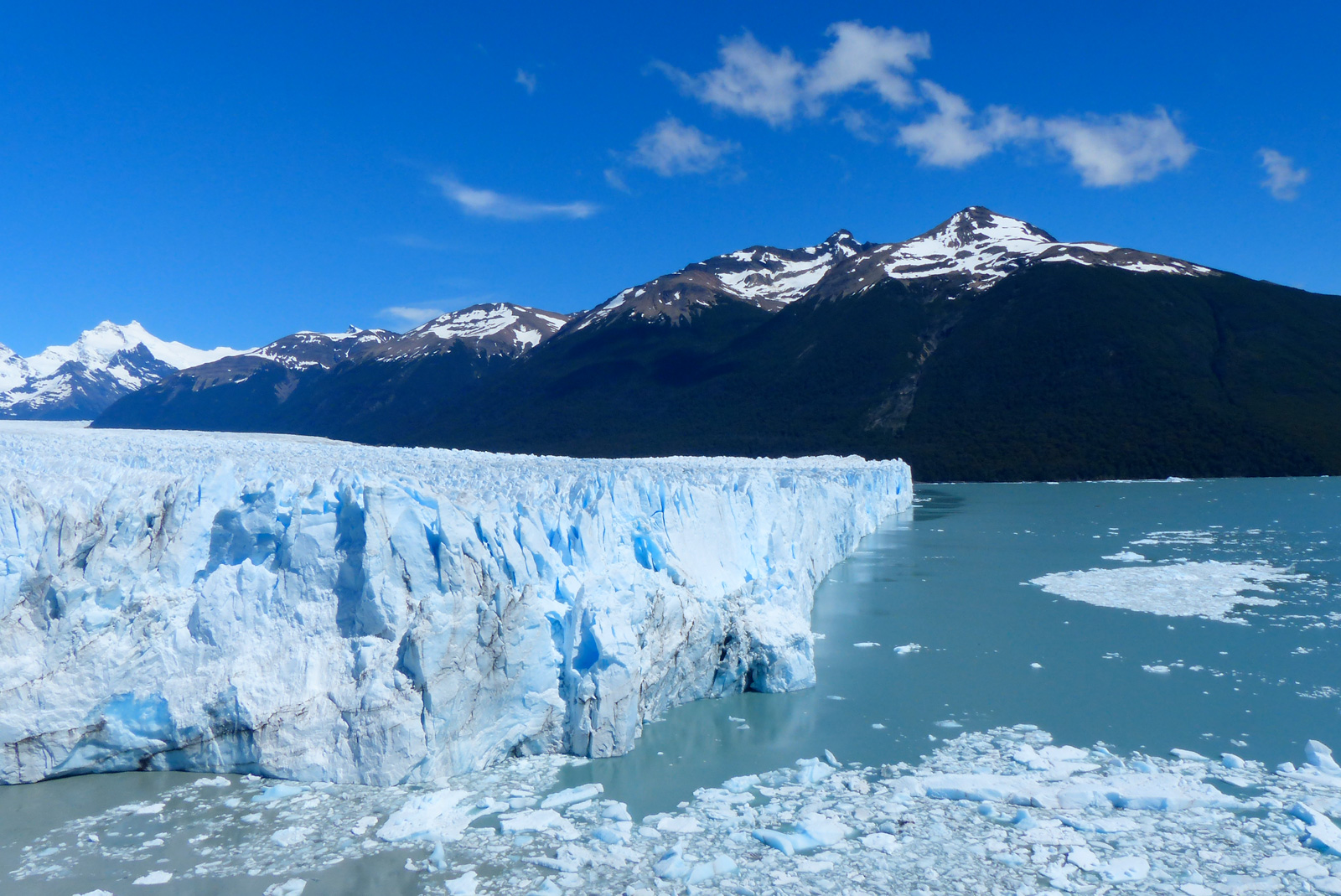 Le glacier hérite son nom de la montagne qui le domine, le Moreno. Il fait 30km de superficie. Comme tous les glaciers, seuls 10% de sa hauteur émerge. Sachant que ce que l’on voit mesure dans les 40/50m, on peut imaginer que sa hauteur totale est de 400/500m, et donc que le lac Argentine est encore plus profond que ça. De ce que nous avons lu, le fond du lac est sous le niveau de la mer. Impressionnant non ?! La glace que nous voyons date de l’âge de glace, elle existait donc bien avant que l’homme existe. Malheureusement, avec le réchauffement climatique, ces glaciers et icebergs perdent de leur superficie chaque année…