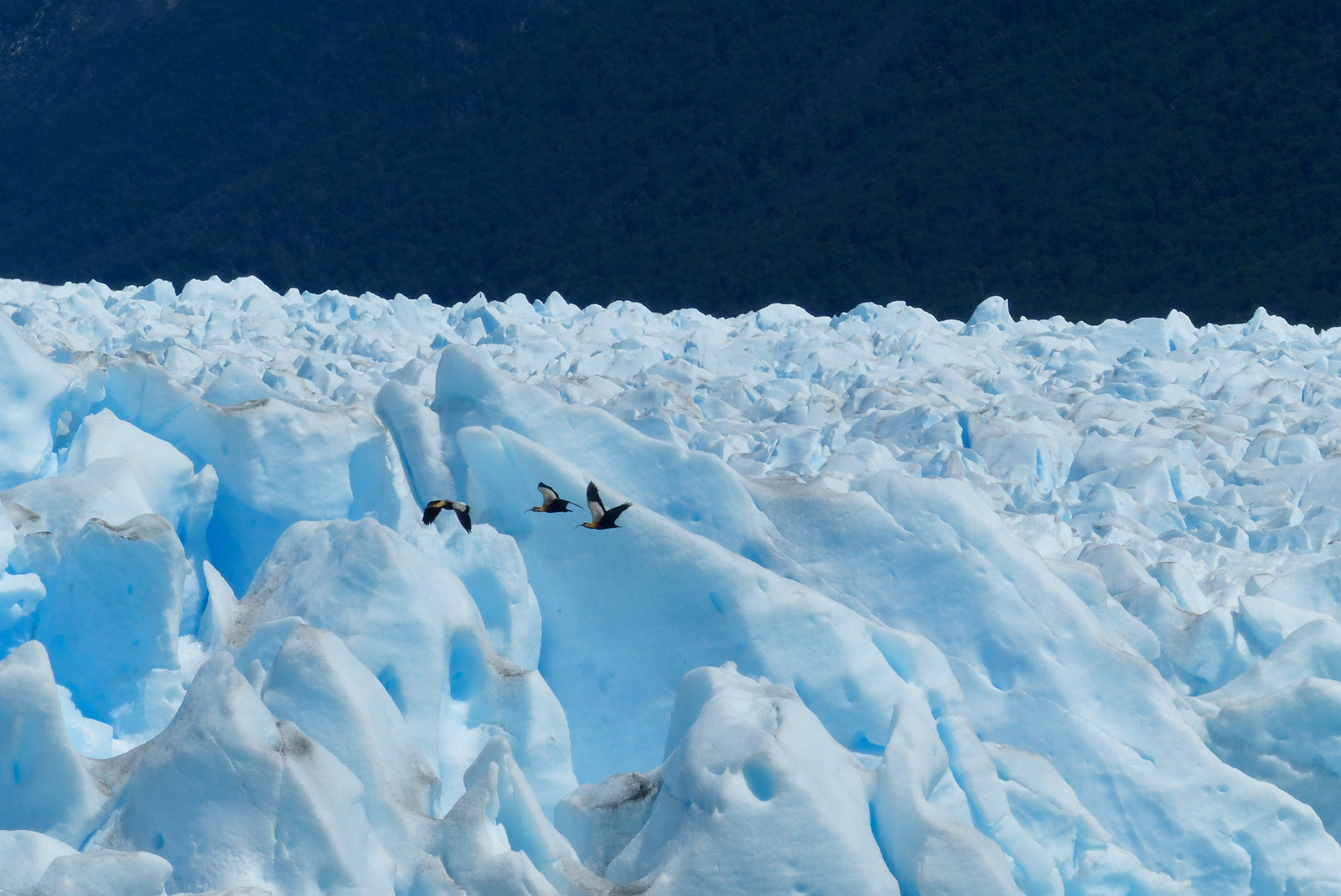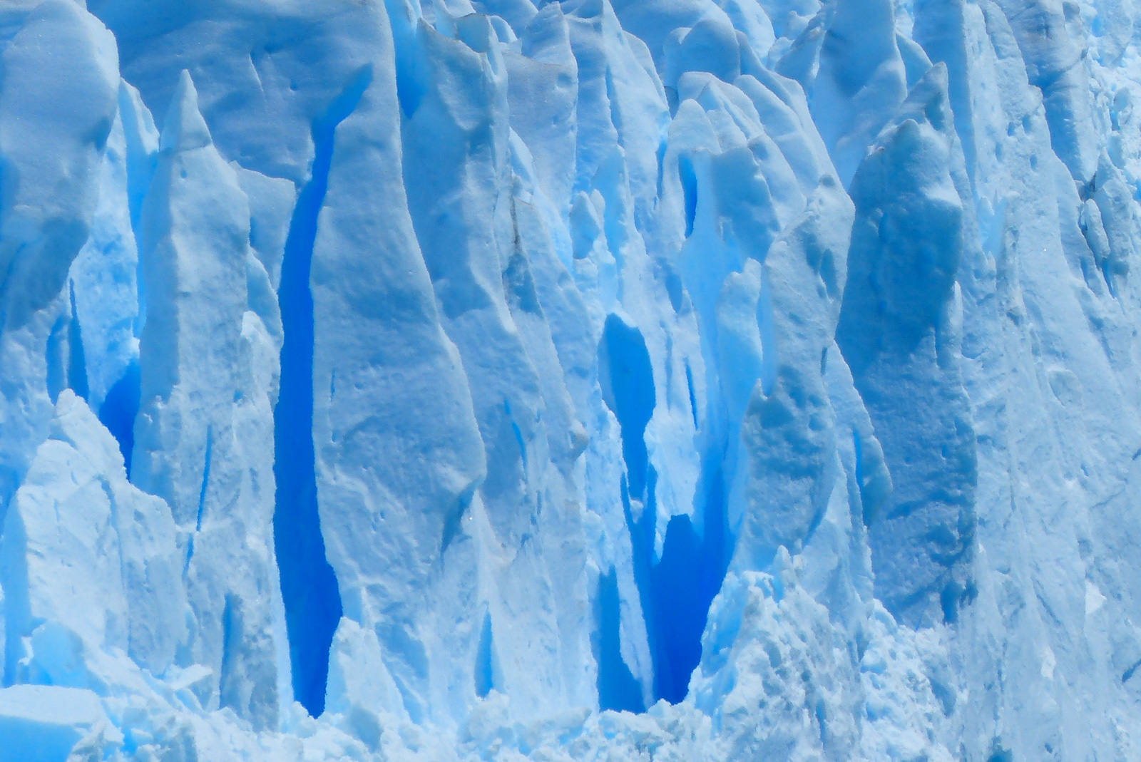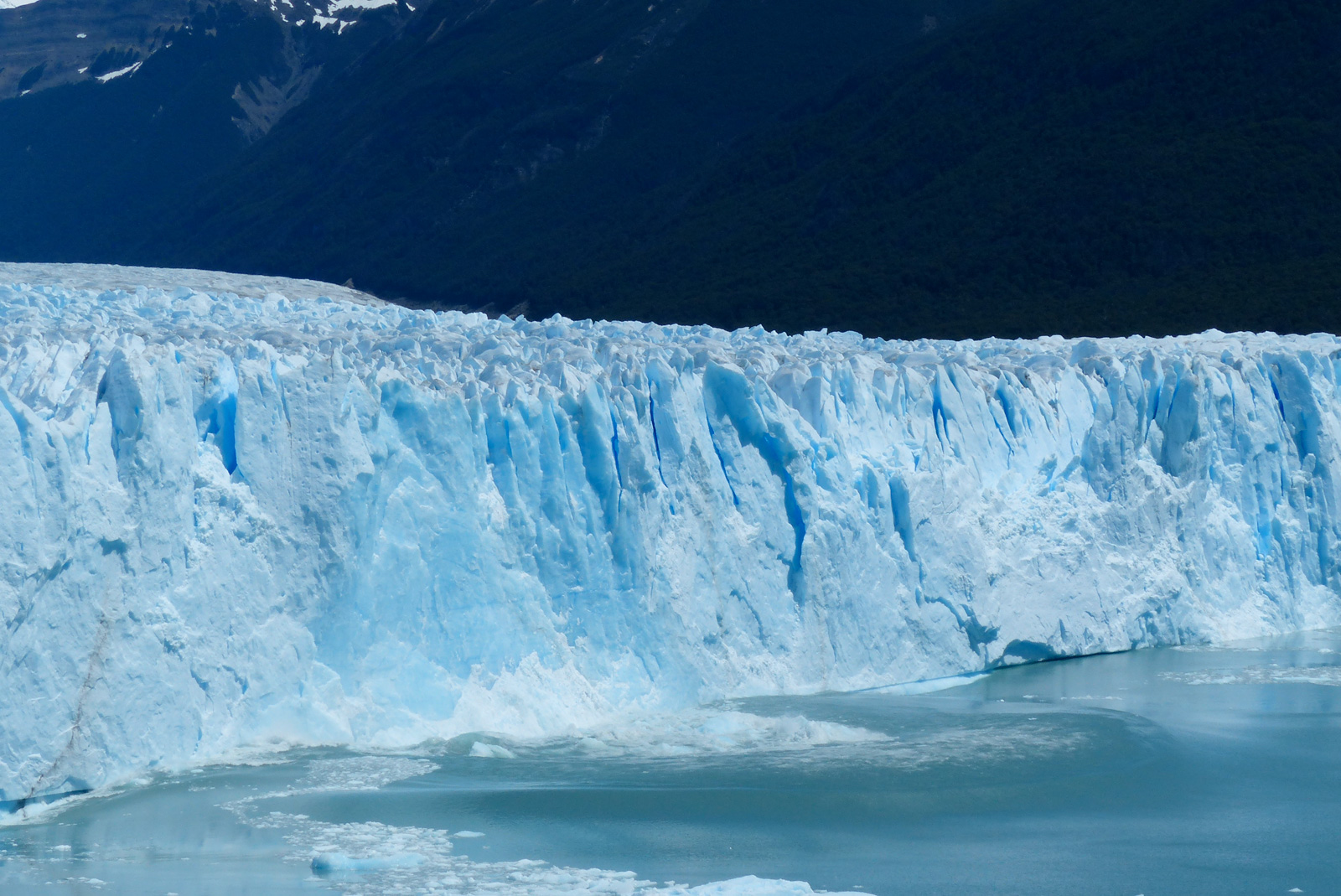Le glacier hérite son nom de la montagne qui le domine, le Moreno. Il fait 30km de superficie. Comme tous les glaciers, seuls 10% de sa hauteur émerge. Sachant que ce que l’on voit mesure dans les 40/50m, on peut imaginer que sa hauteur totale est de 400/500m, et donc que le lac Argentine est encore plus profond que ça. De ce que nous avons lu, le fond du lac est sous le niveau de la mer. Impressionnant non ?! La glace que nous voyons date de l’âge de glace, elle existait donc bien avant que l’homme existe. Malheureusement, avec le réchauffement climatique, ces glaciers et icebergs perdent de leur superficie chaque année…