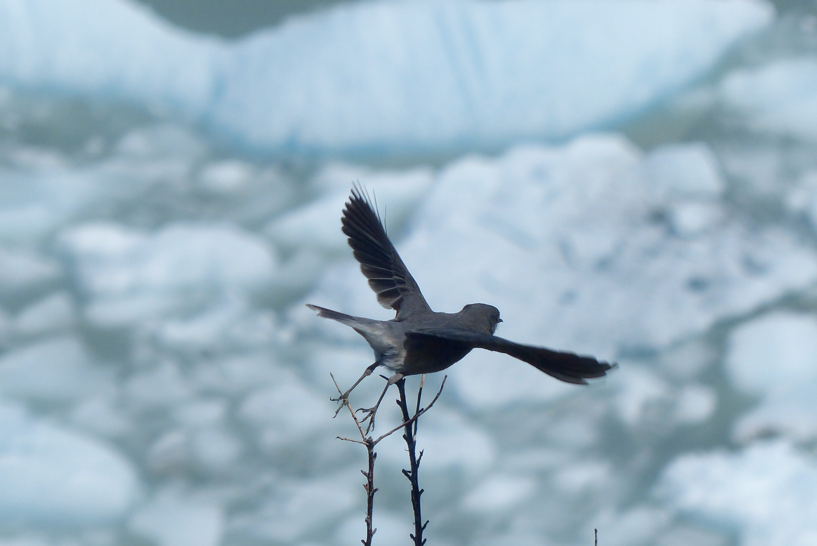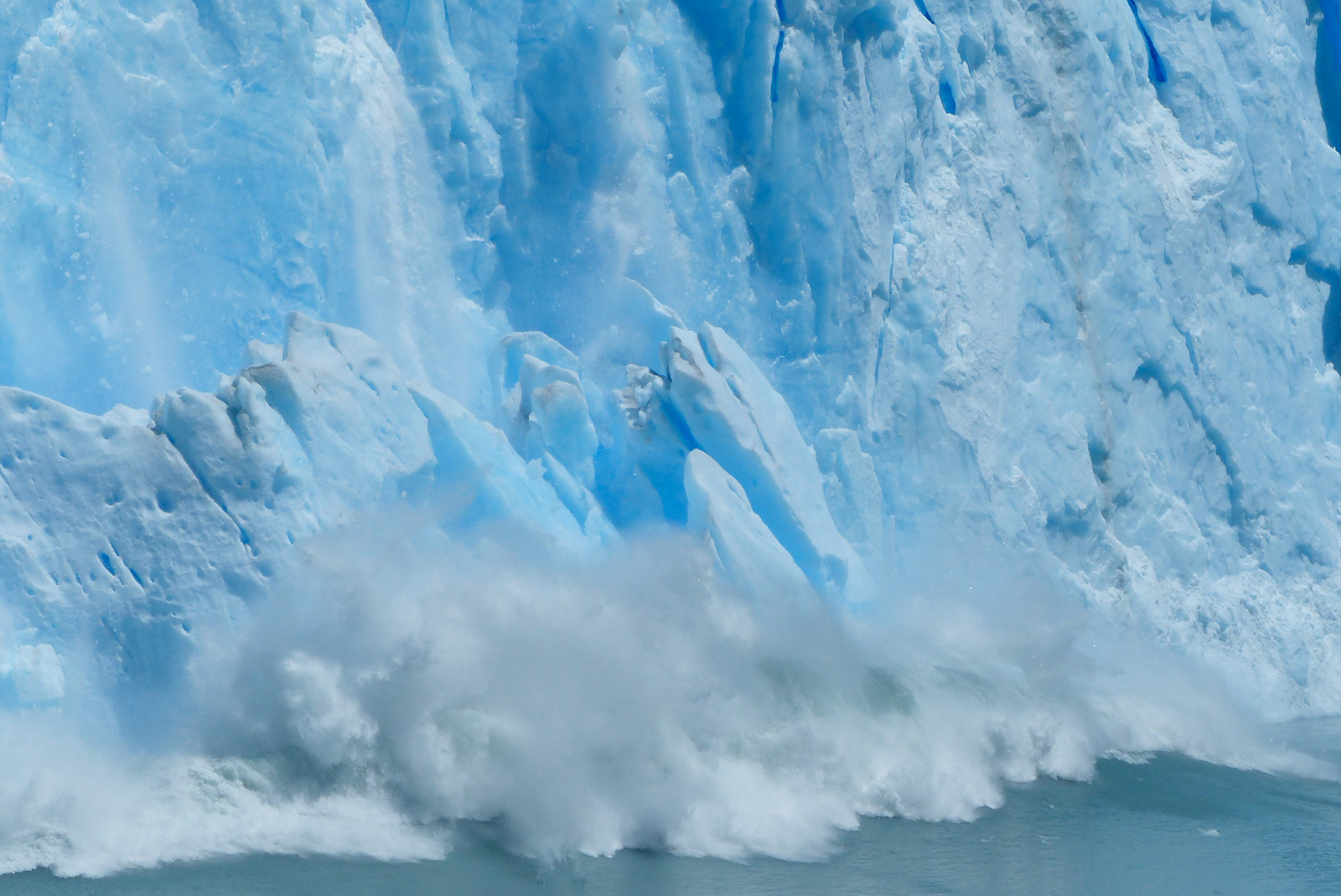 Et là, nous tournons la tête une seconde, quand un craquement plus fort que les autres nous interpelle. Un pic de glace de bien 10m se détache. Il est un peu loin, sa chute semble être au ralentie. Lorsqu’il atteint l’eau un bruit énorme et sourd nous parvient, la vague et l’onde créées dans l’eau sont époustouflantes. Mimax et moi sommes bouche bé ! Raté pour le long métrage de Mimax, plus de place sur sa carte mémoire, à force de filmer dans l’espoir qu’il se passe un truc…