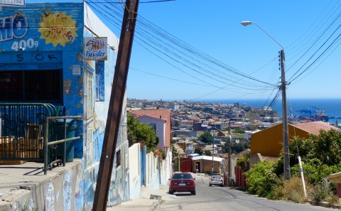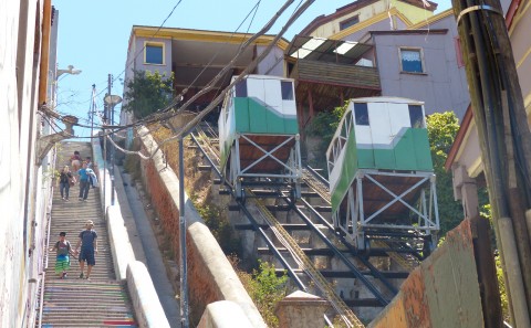 Ce matin nous prenons un bus pour aller de Vina del mar à Valparaiso ou Valpo pour les intimes. Ici, tout le monde circule en bus.