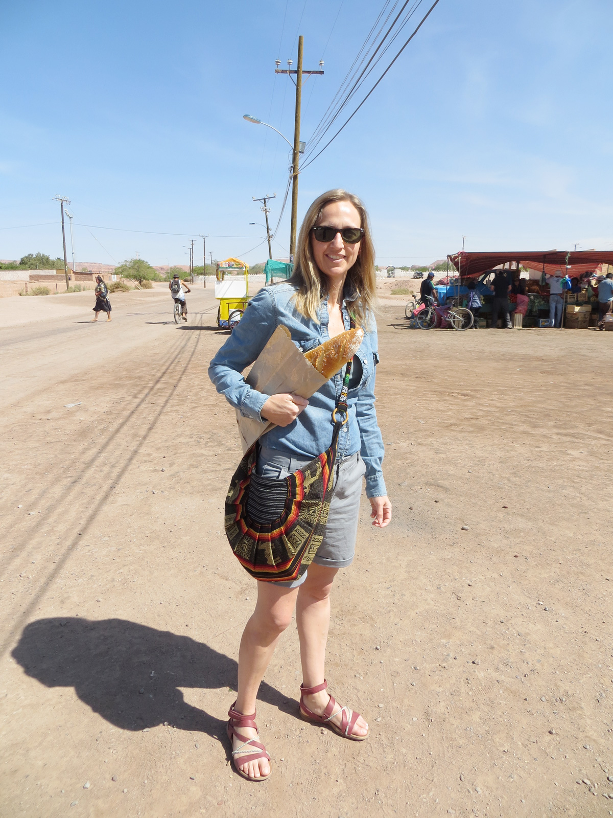So French indeed … Les filles sont « in the middle of nowhere » mais quand meme le petit look frenchie voire parisien avec maman et sa petite chemise en jeans cintree avec the so French baguette sans parler de Vyrg’ la jouant super naturelle avec les sunglasses au mercado ;)