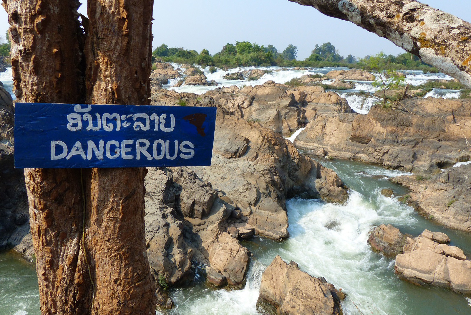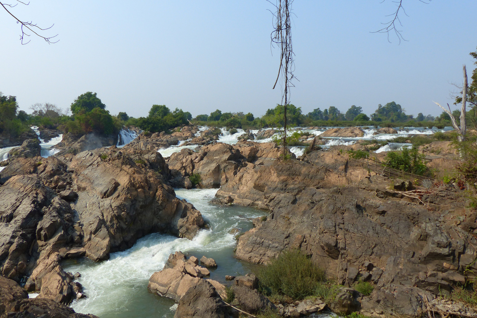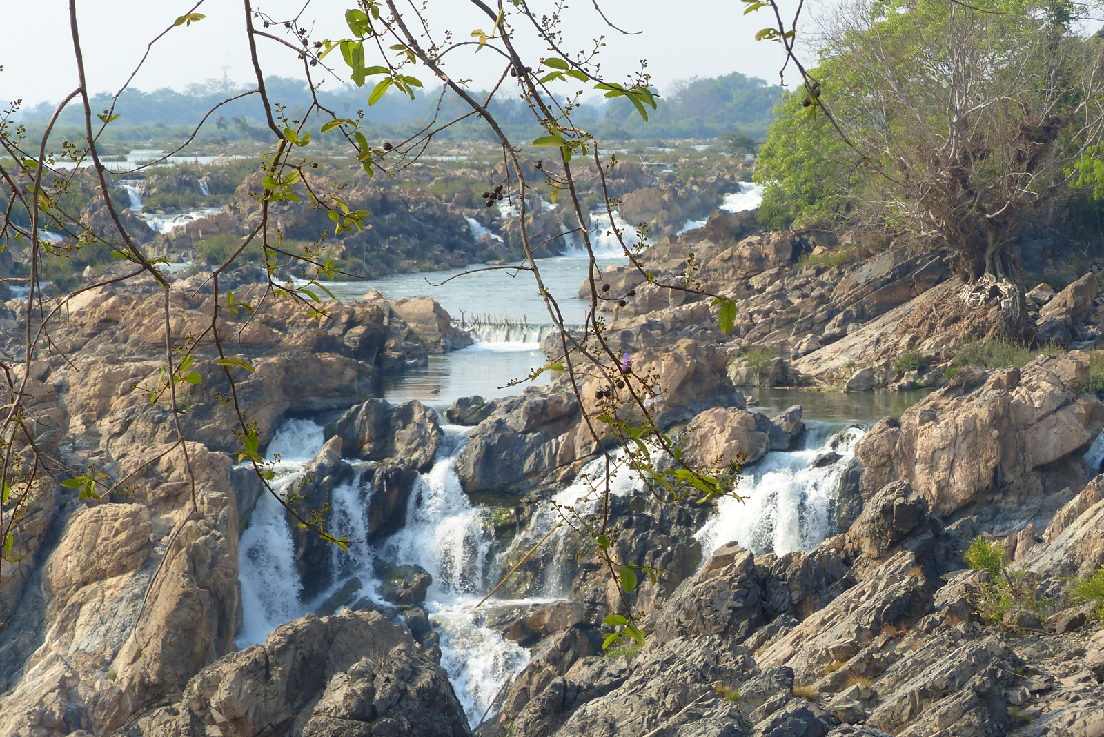Au niveau du pont qui relie Don Kohne à Don Det nous devons payer un droit d’entrée de 15000 kip pour la journée. Ce pont a été construit par les Français à l’époque de notre présence. À proximité (à gauche après le pont) nous pouvons voir une ancienne locomotive de l’époque. En effet, les Anglais et les Français avaient fait construire une voie ferrée, désaffectée aujourd’hui, pour exporter les richesses du pays et faire du commerce en Asie du Sud Est. C’est ce qu’on appelle la colonisation même si nos gouvernements n’aiment pas le nom… A un moment il faut appeler un chat un chat !