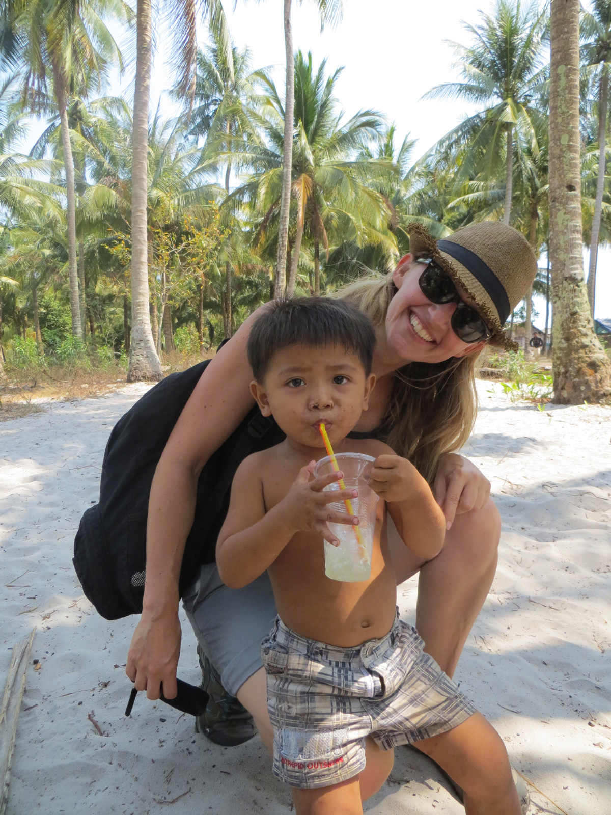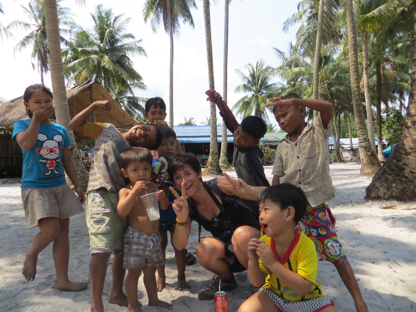 En arrivant nous piquons immédiatement une tête car il fait extrêmement chaud. Cette matinée ne nous a pas laissé indifférentes. Nous avons une nouvelle image des cambodgiens que nous n’avions pas toujours trouvés très sympathiques (à quelques exceptions près) jusqu’à présent. Ces moments de partage et ces sourires resteront à jamais dans nos mémoires.