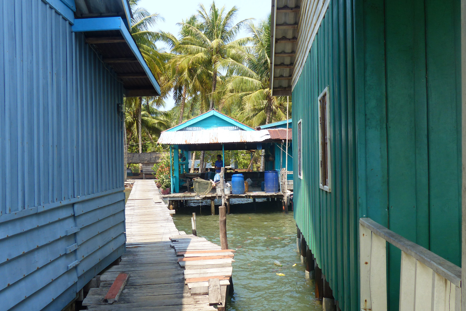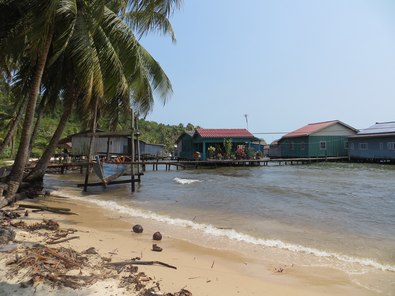 Nous arrivons sur le front maritime du village. Les maisons sont construites sur l’eau. Nous sommes choquées et déçues de voir des tas de détritus flottant dans l’eau. C’est dommage qu’ils n’entretiennent pas plus que ça leur lieu de vie…