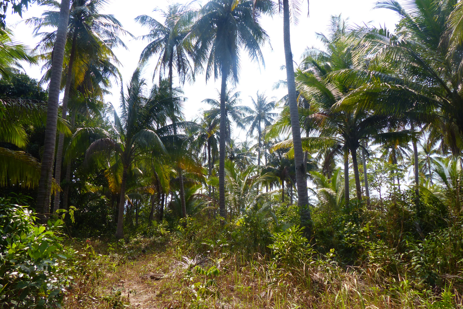 La balade est facile. Nous traversons des cocoteraies, des forêts denses, des plantations de noix de cajou et quelques plateaux désertiques. On se croirait dans la série « Lost ». Nous ne regrettons pas d’être tombées sur nos guides car parfois nous n’aurions pas su où aller. Nous repérons le chemin avec des moyens mémo technique pour ne pas se perdre au retour. Heureusement que ma grand-mère m’a souvent raconté l’histoire du Petit Poucet. On ne nous y prendra pas !