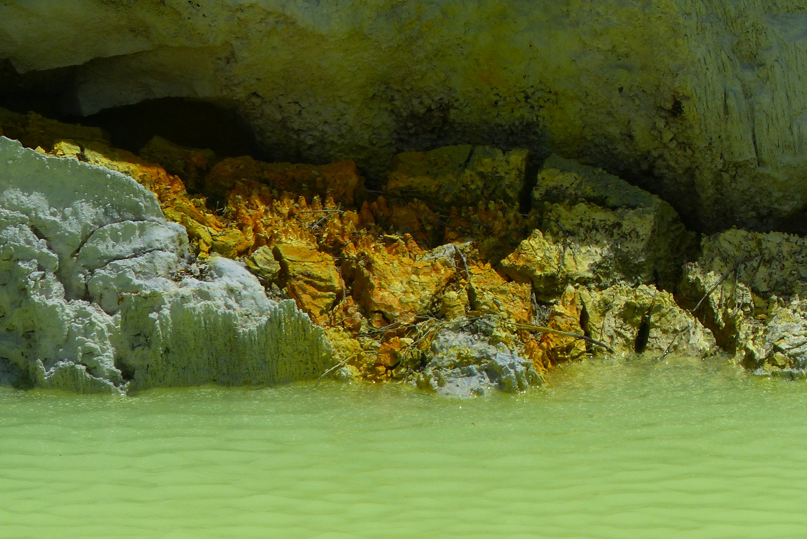 Comme vous devez vous en douter, la grande variété de couleurs est due aux différents composants chimiques (une pensée pour Patoche) : arsenic, soufre, silice, oxyde de fer. Bref, t’as pas intérêt à faire un faux pas et tomber dans un des lacs. Egalement, il faut se préparer aux odeurs qui vont avec.