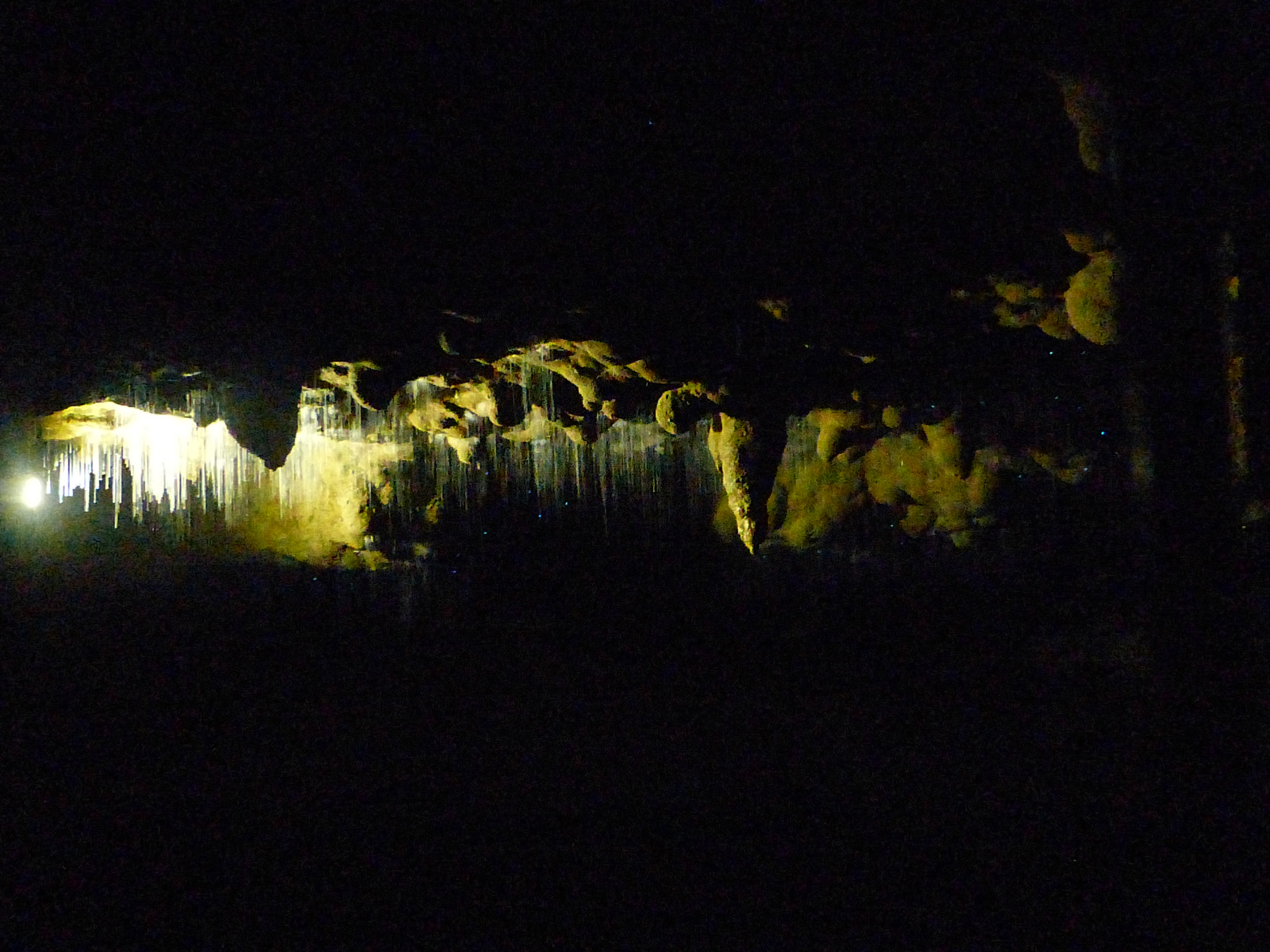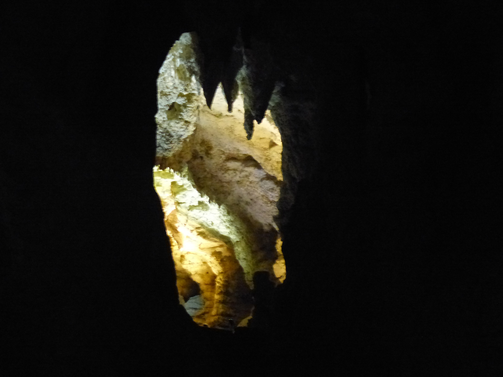 La balade commence dans une grotte totalement aseptisée (carrelage par terre, rambardes, lumière électrique,…) où l’on nous explique le principe des stalactites et stalagmites (on n’apprend rien sur le sujet) et comment la grotte a été aménagée (franchement, qu’est ce que ça peut nous faire de savoir en quelle année ils ont mis l’électricité dans cette caverne ?!). Pendant ce temps, en bonne française qui n’aime pas les interdits, je prends des photos (et toc !) mais sans flash bien sûr pour ne pas altérer le lieu (à ce moment là j’imagine que c’est la raison pour laquelle il est interdit de prendre des photos…).